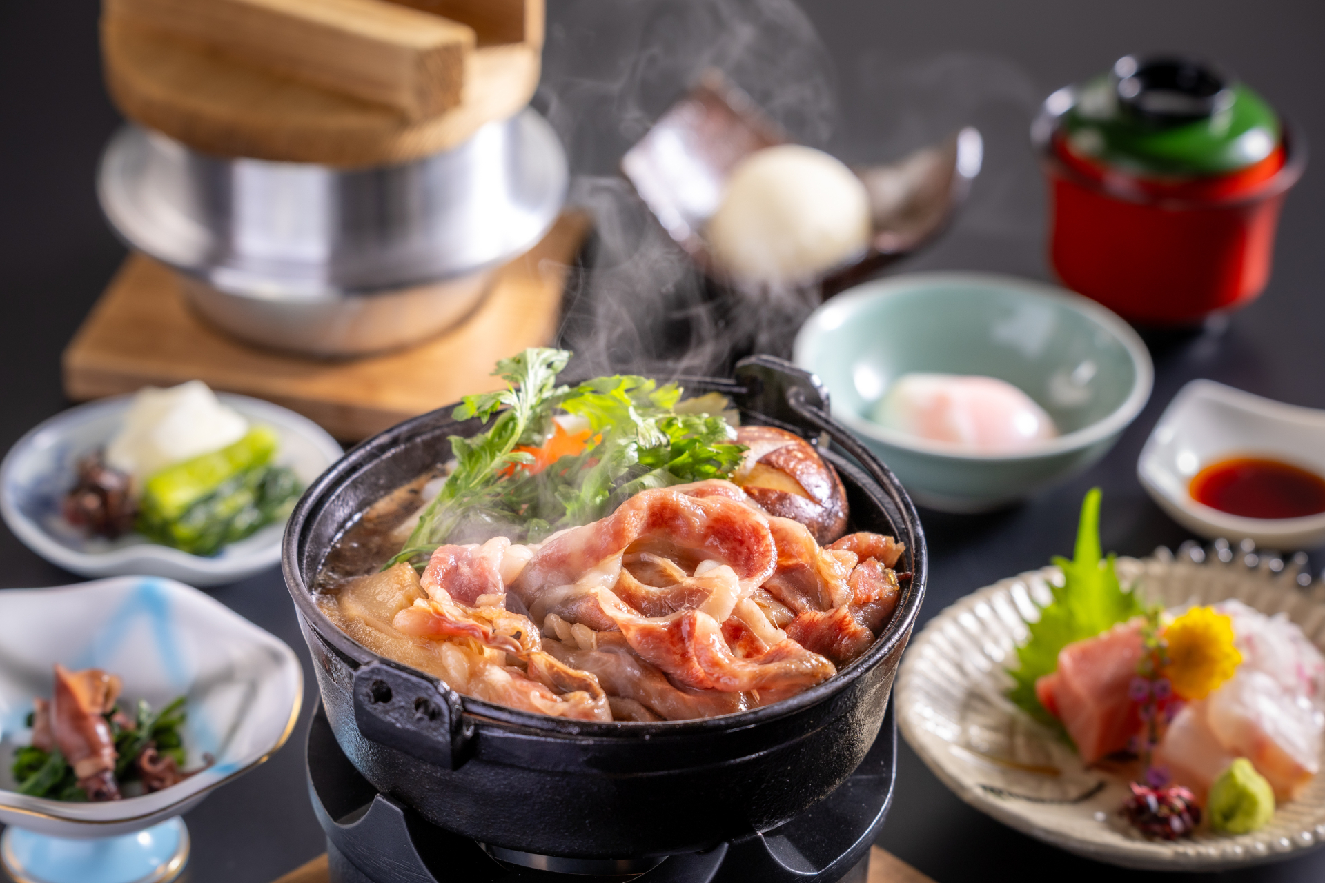 口の中でほどける柔らかな肉質と、濃厚な旨みが響き合う格別な「すき焼き御膳」を、