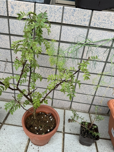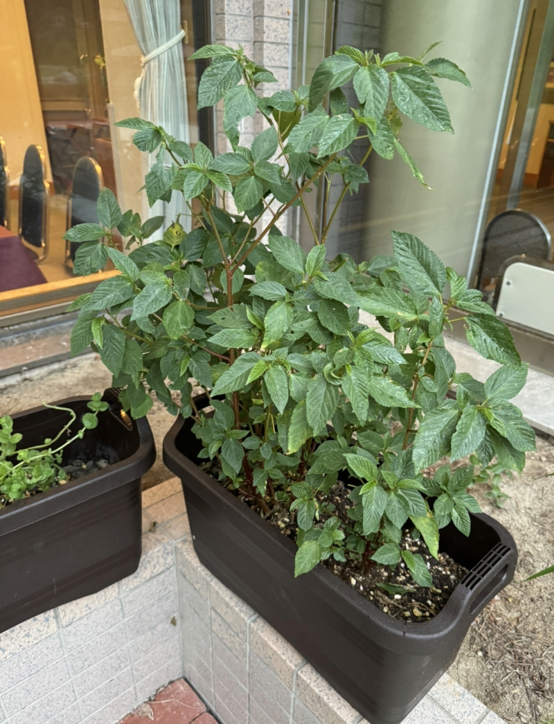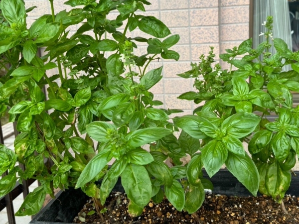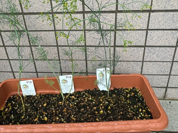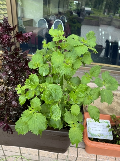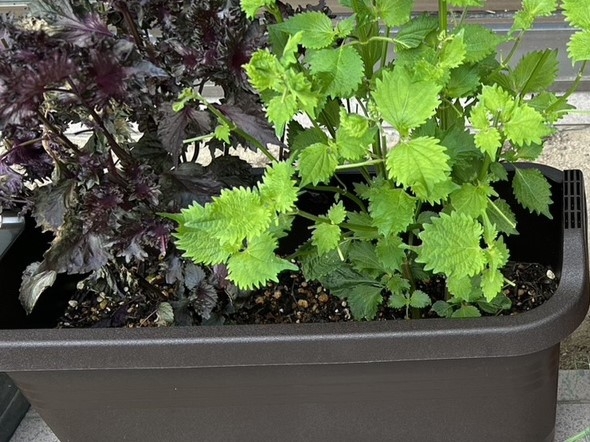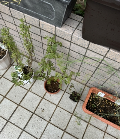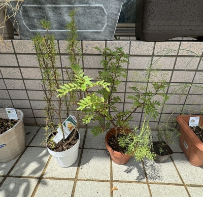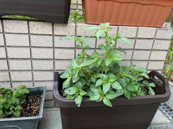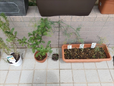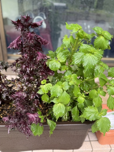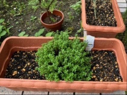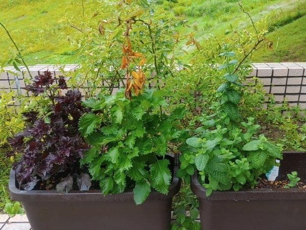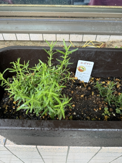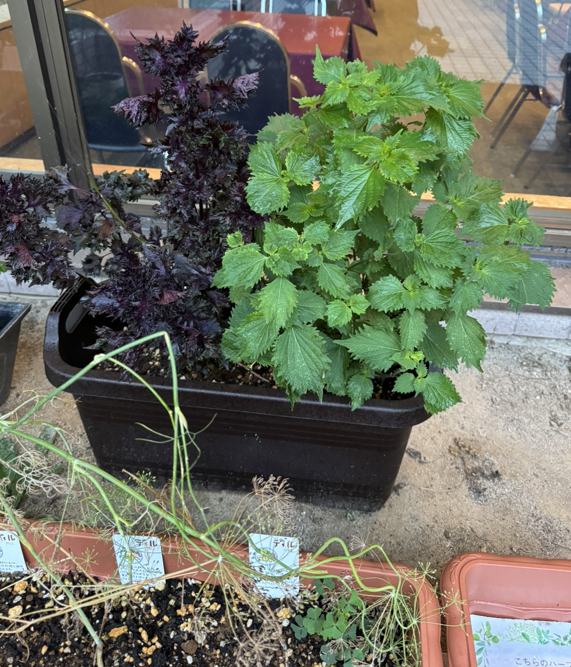ハーブやローズマリーやパセリなどの数種類の食用植物を育てながら