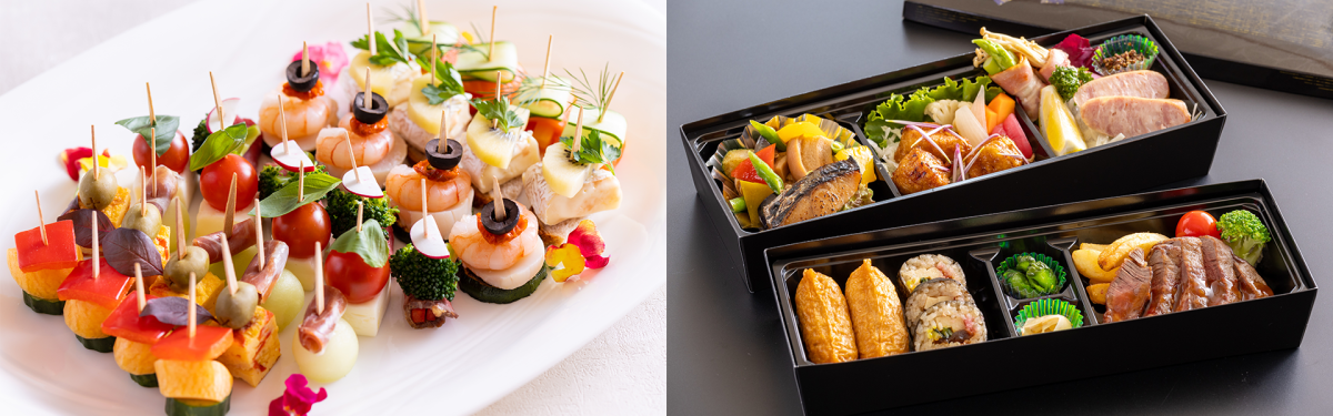 ニューオータニのおいしいメニューを詰め合わせたお重弁当をはじめ、パティスリーSATSUKIのスイーツやお散歩のお供にぴったりなランチボックスなど、ご家庭でお楽しみいただけるメニューをご用意しております。
