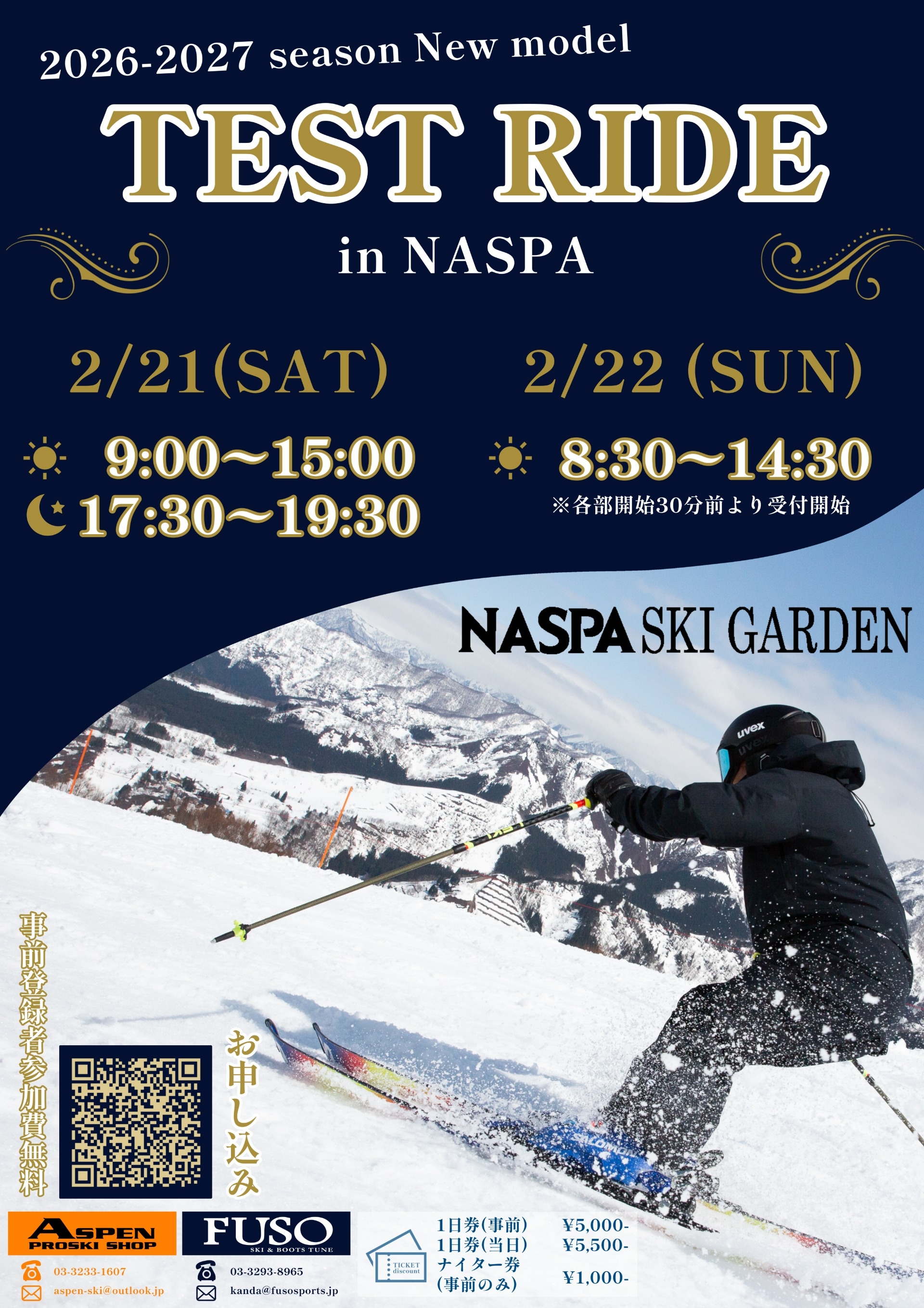 | お問合せ | FUSO SKI&BOOTSTUNE Tel.03-3293-8965 プロスキーショップ アスペン Tel.03-3233-1607 |