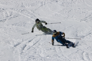 スピードではなく、大回りや小回りなど技術を競う採点競技です。
