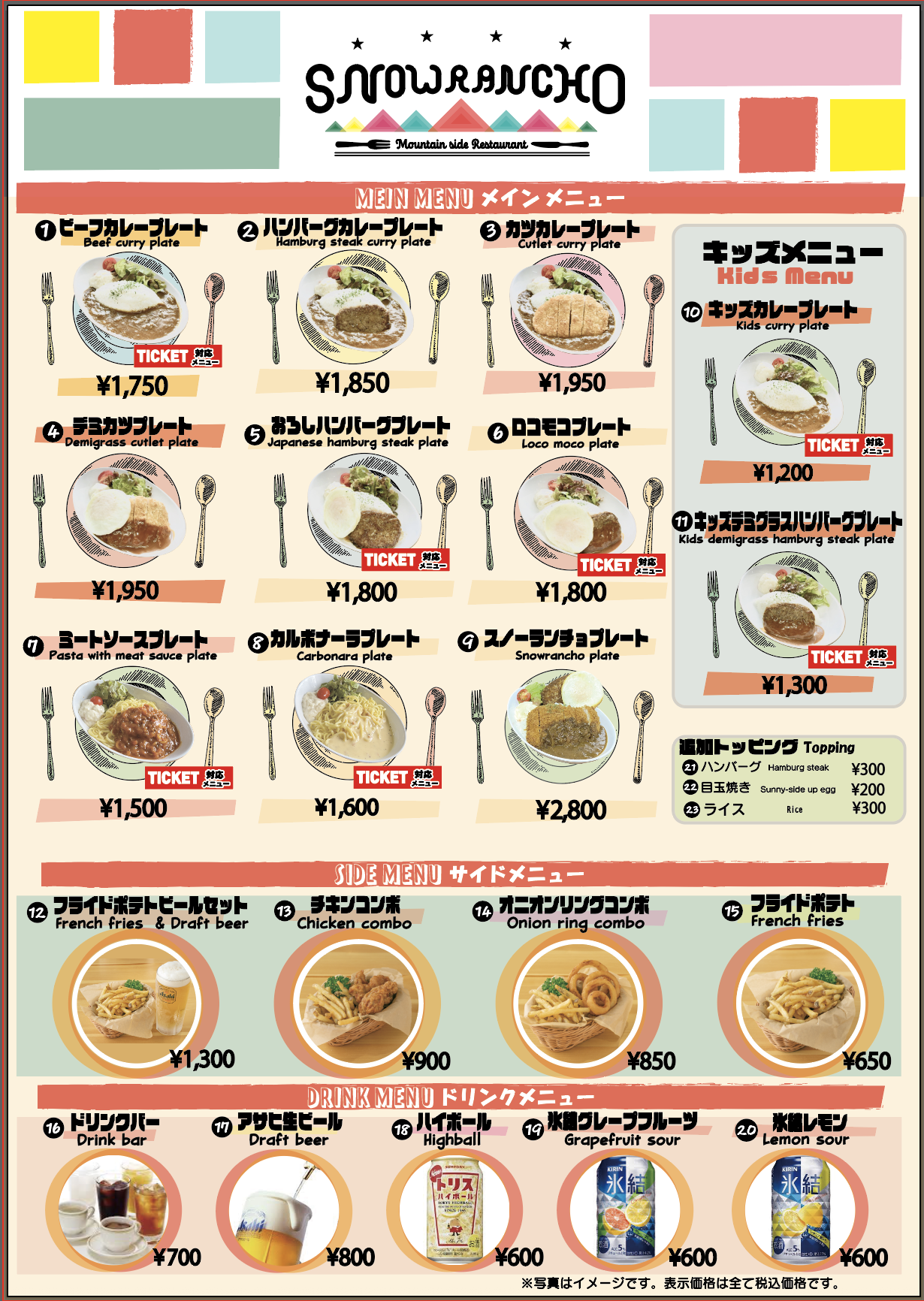 ゲレンデの営業状況により、営業内容が変更となる場合がございます。