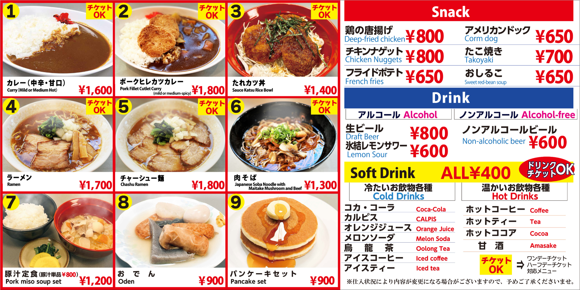 | お支払い | 現金・クレジットカード・電子マネー・QRコード決済・部屋付け |