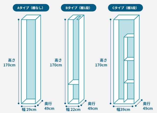 棚なし 高さ170cm 幅29cm 奥行49cm
