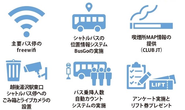 4社共通シャトルバス協議会と一般社団法人雪国観光圏は「100年後も雪国であるために」の理念の下、シャトルバスの持続的共同運行並びに有料化に向けた取組みと来訪者と町民の満足度向上の為の洗練された心地よい空間の醸成を目指しており、越後湯沢駅東口・湯沢温泉通りと4つのスキー場を結ぶ4 社共通シャトルバスを運行し、CO2 削減による環境への配慮、道路渋滞の緩和、来訪者にとって便利な二次交通運行による誘客促進と地域経済への貢献に努めています。